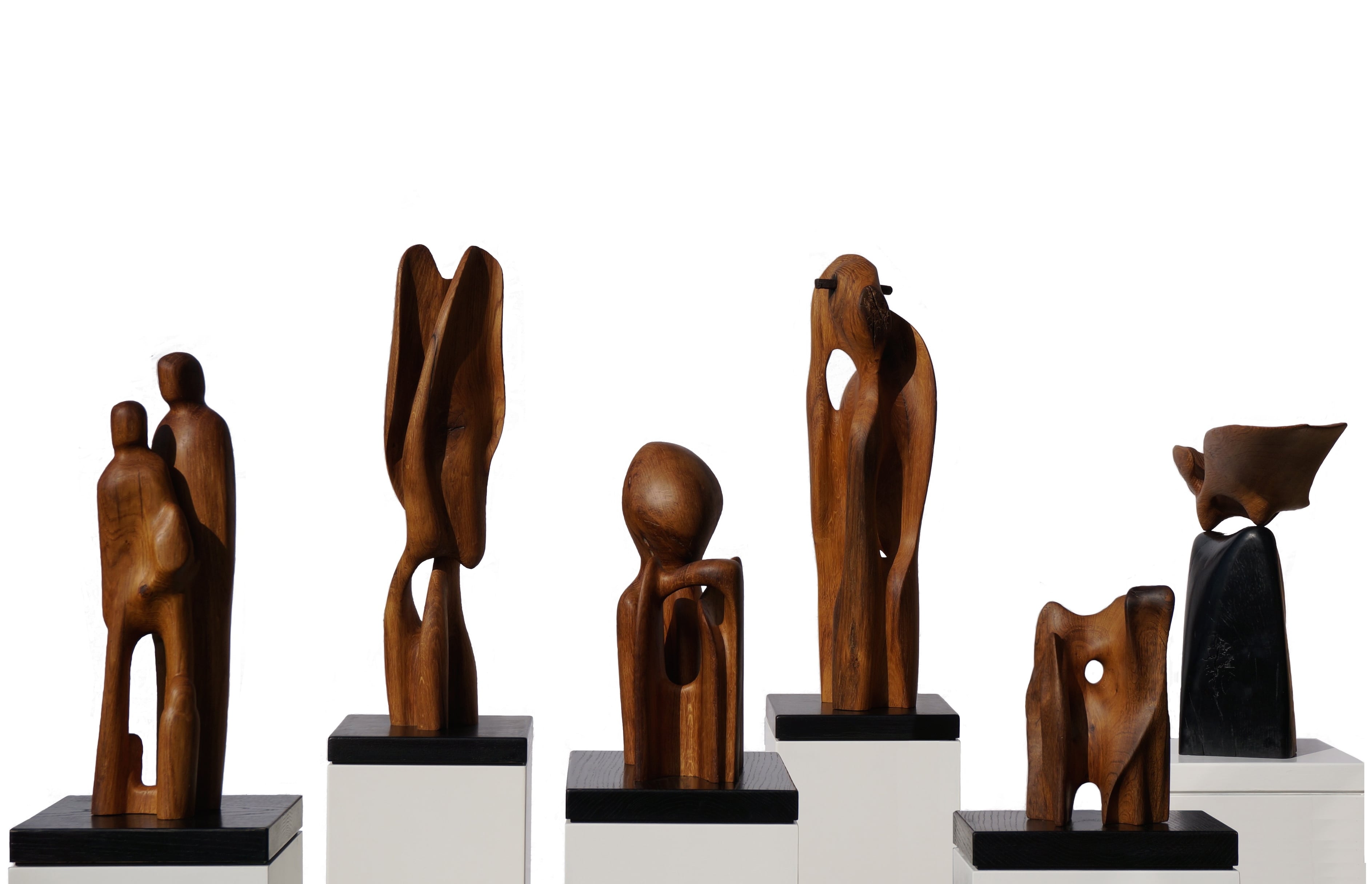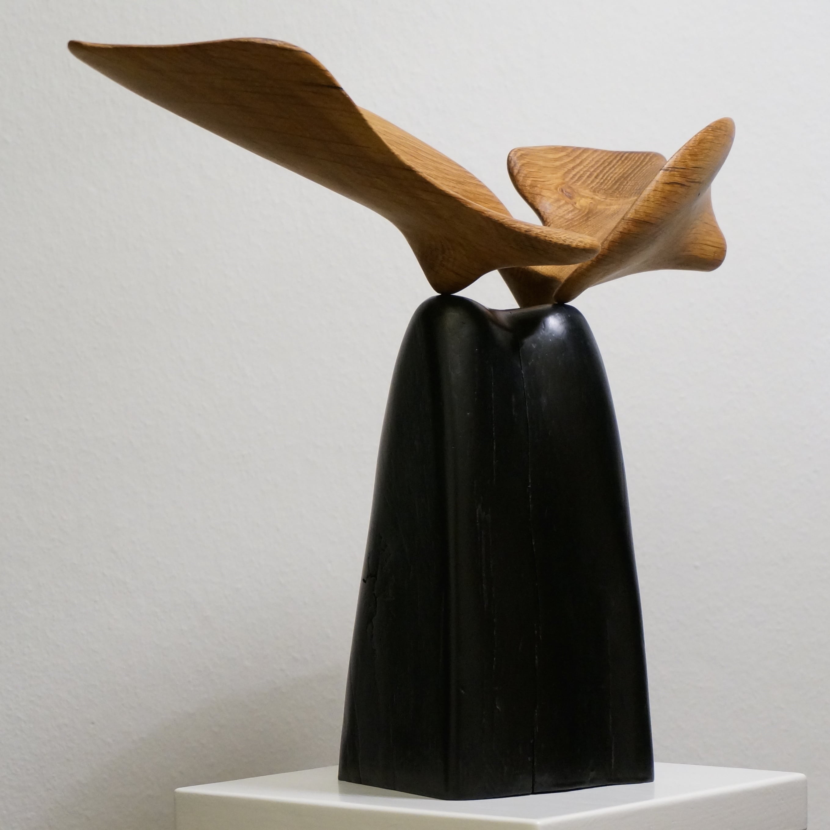 Skulpturerne er lavet i egetræ fra gammel bindingsværk. Formgivningen har et konceptuelt afsæt, men inspireres af det modspil der ligger i træets struktur og åretegninger.